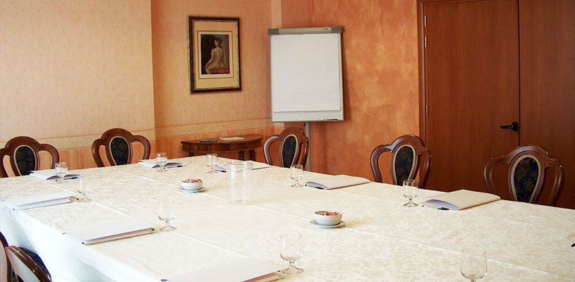 L’Hotel dispone inoltre di una seconda sala per piccoli meeting, che può essere fornita o con un ampio tavolo imperiale fino a 16 pax) o con sedie disposte a platea fino a 25 posti a sedere.
